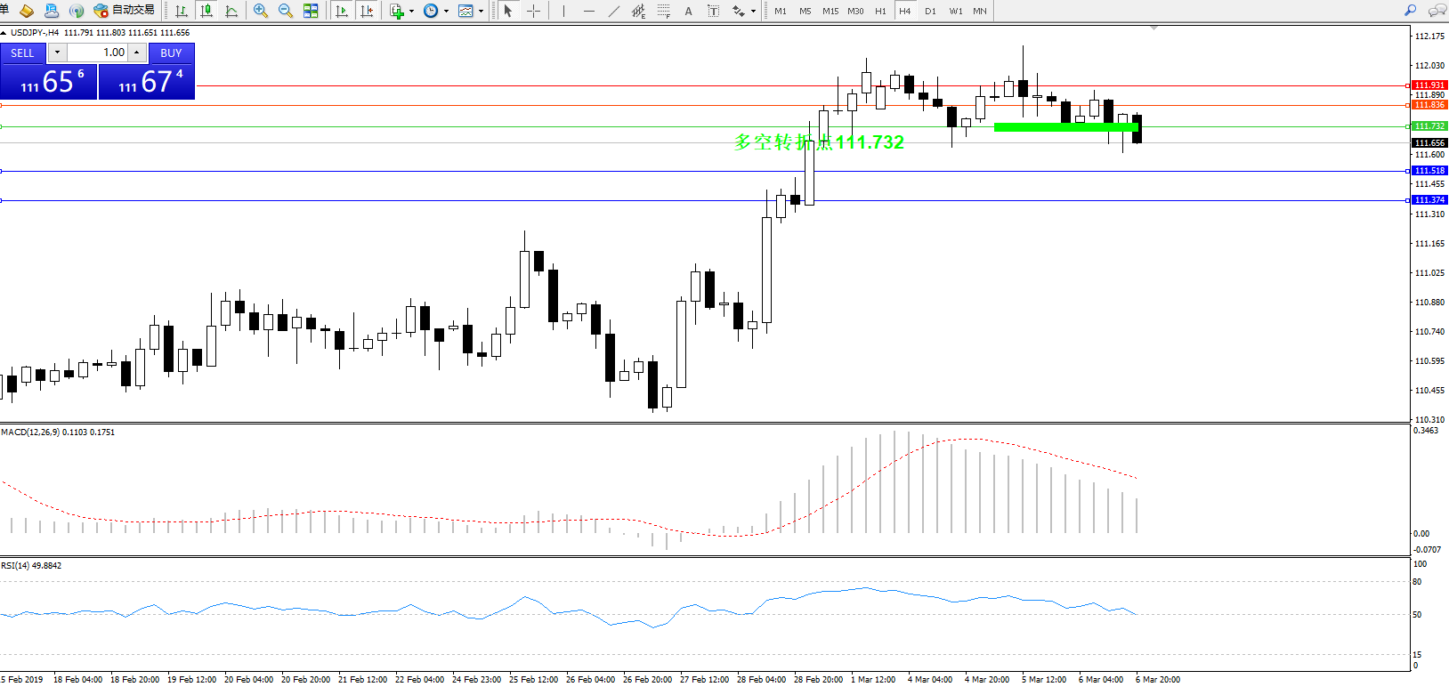 技术点评:高位持续整理徘徊后出现下行迹象,MACD指标多头区域空头动力伺机入场,RSI指标回归50均衡线附近徘徊;