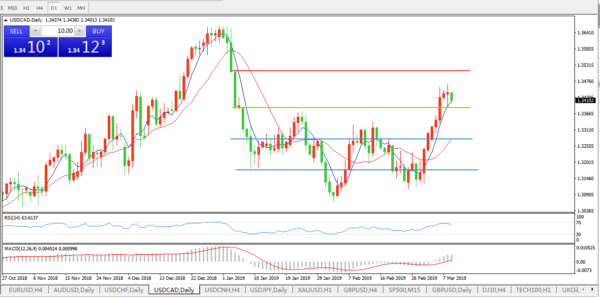 美元兑加元USDCAD 日线图: