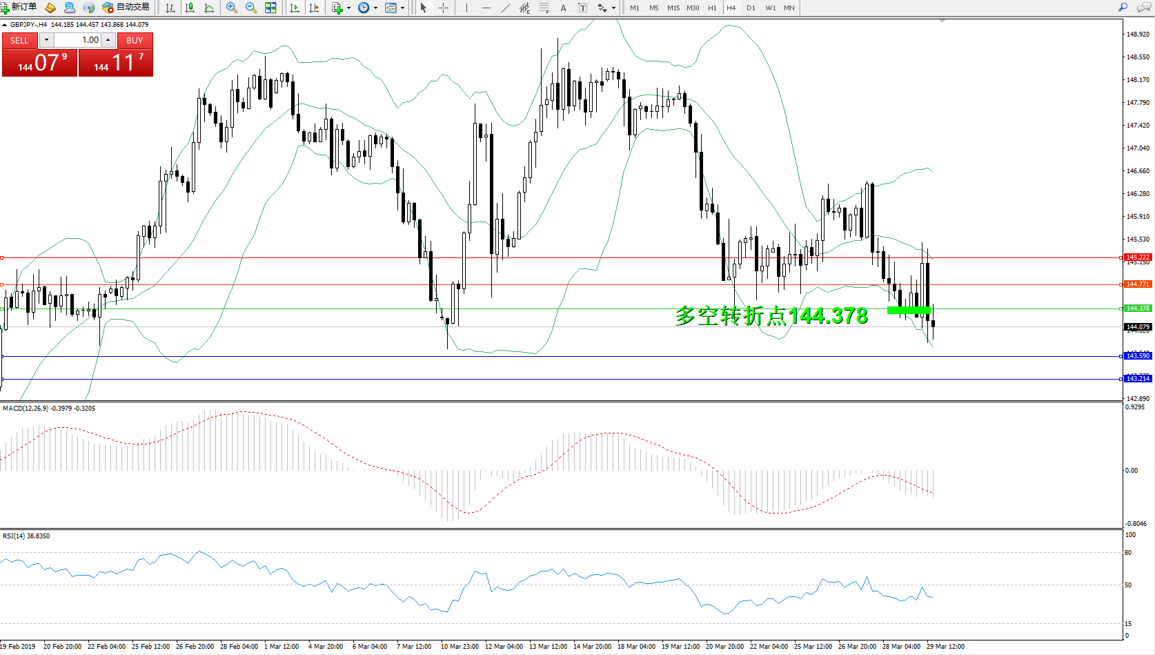 交易策略:144.378下方看跌,目标143.590143.214