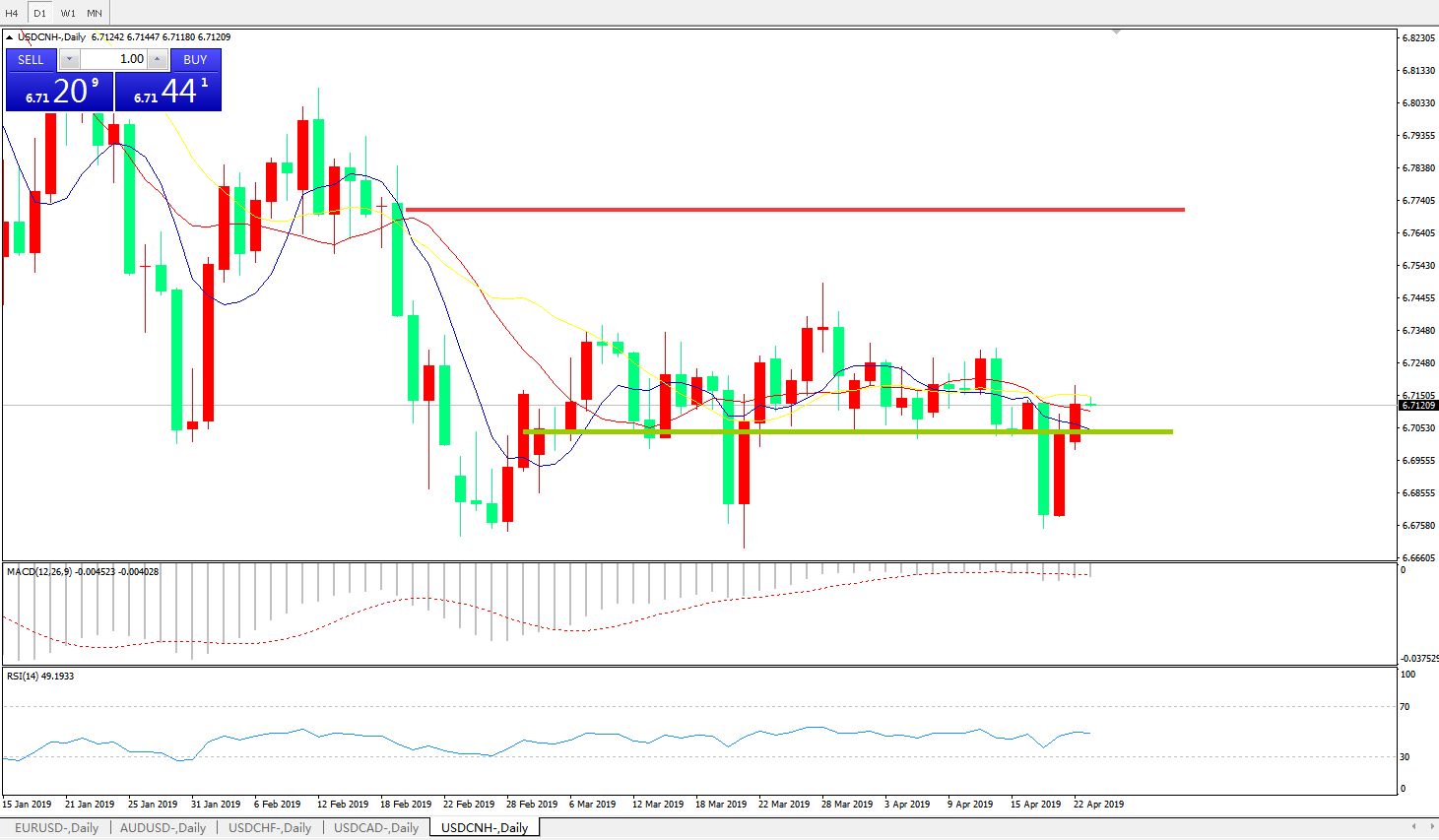 备选策略: 6.6990之下,看跌,目标价位为6.6730,然后为6.6325