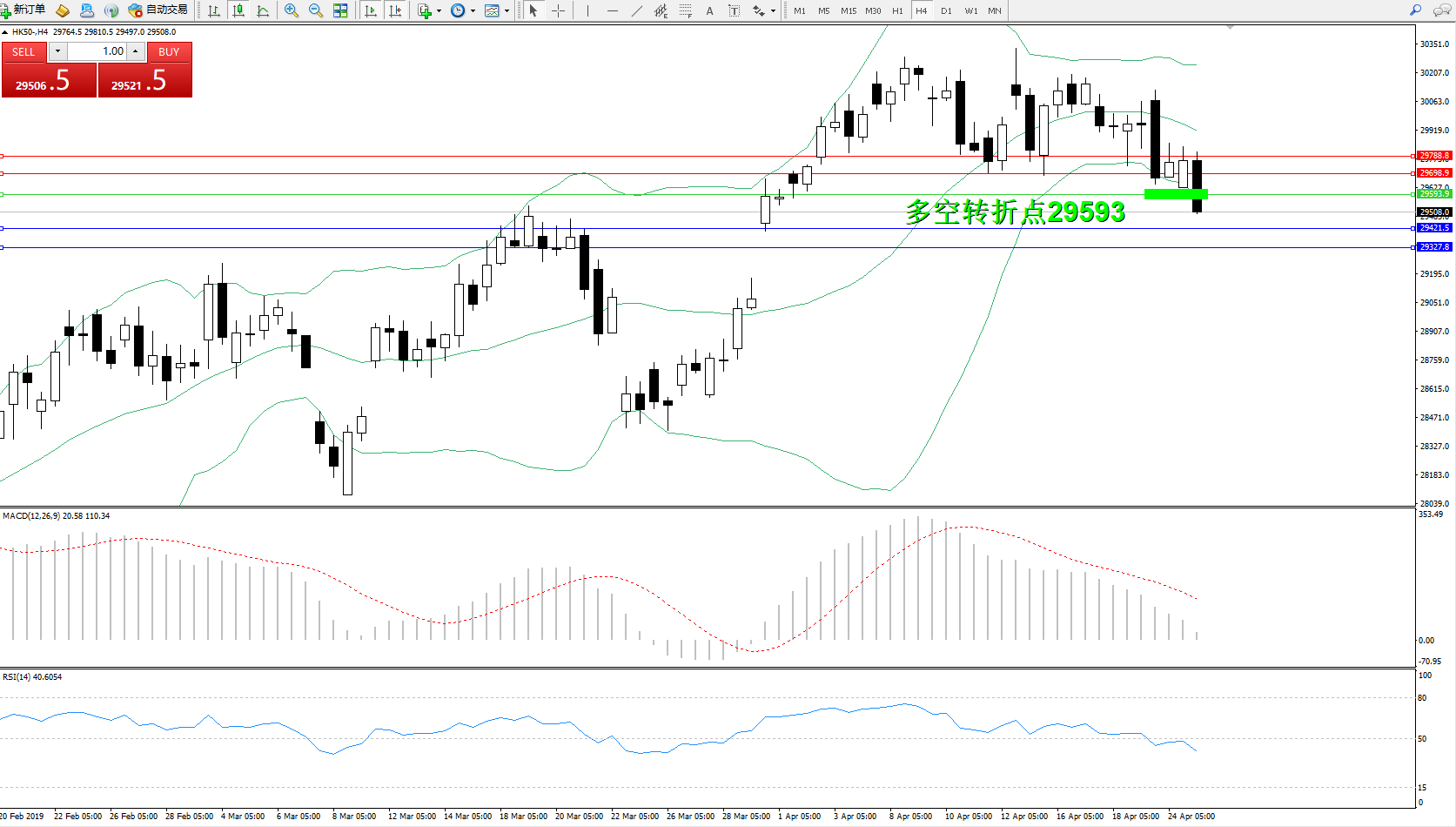 中国内地股市早盘低开后在平盘线下方维持窄幅波动,午后持续震荡走低。国务院新闻办公室举行国务院政策例行吹风会。香港恒生指数早盘低开后一度走高,但在平盘线附近遇阻,午后再度回落,截至收盘,恒指跌0.86%,报29549.79点。若未来经济数据继续有较佳表现,相信可带动A股有理想现,连带有利港股作出突破。