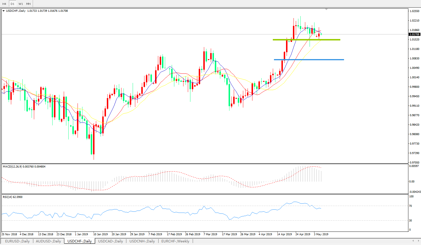 美元瑞郎USDCHF   日线图: