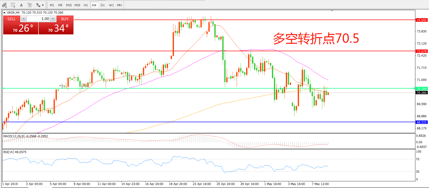 多空转折点:70.50