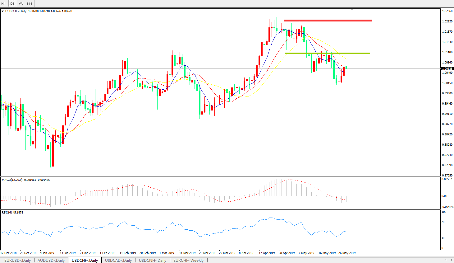 美元兑瑞郎USDCHF 日线图: