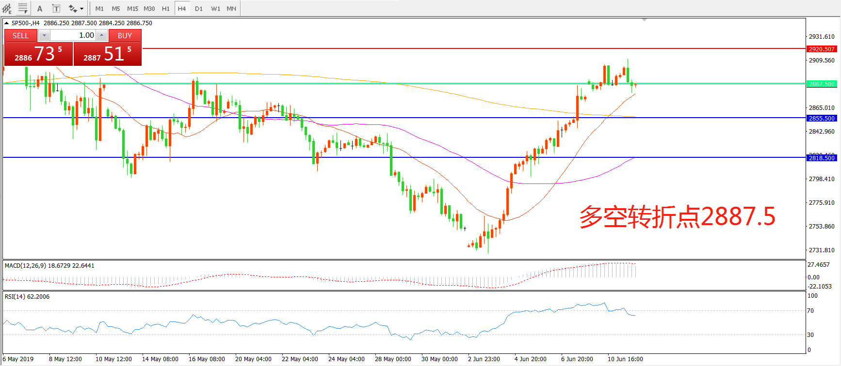 多空转折点:2887.50