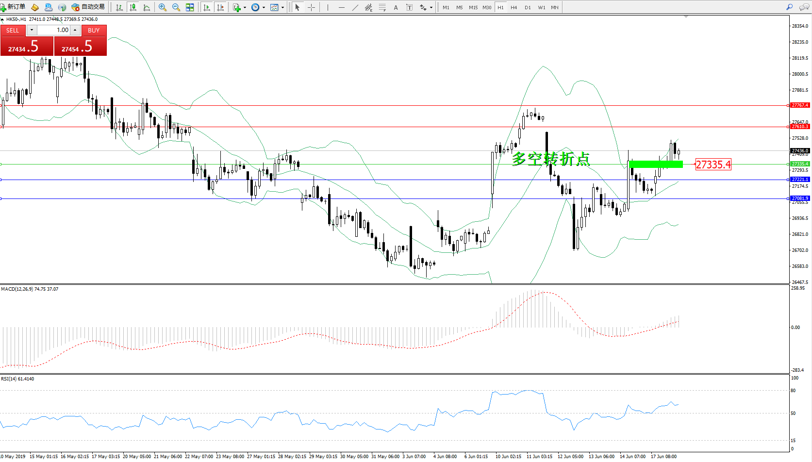 恒指HK50 ——1小时K线图显示: