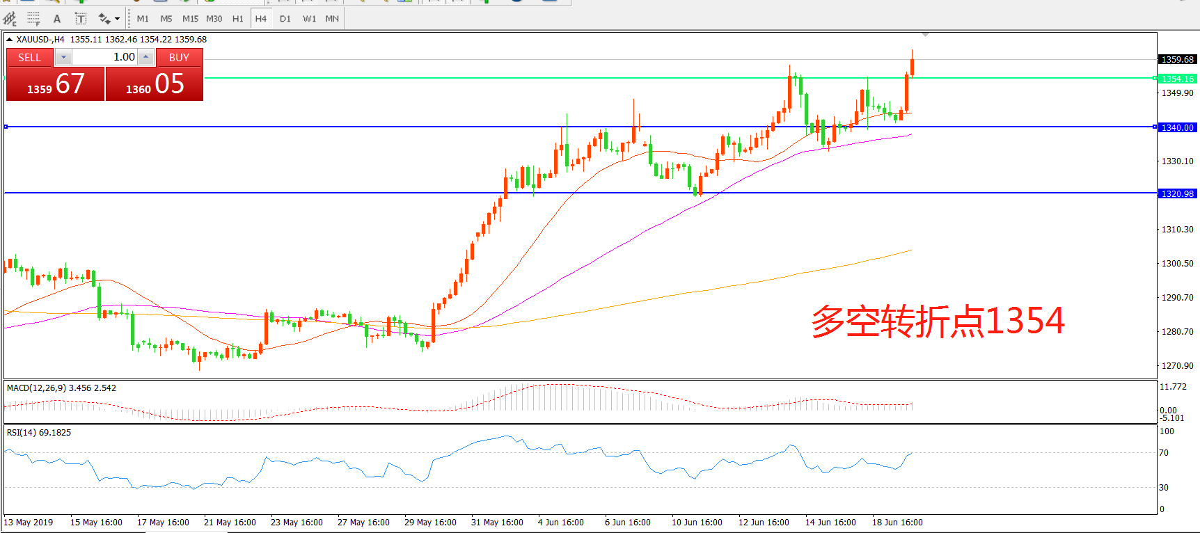 多空转折点:1354.00