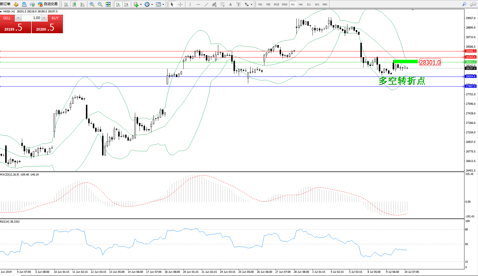 交易策略:28301下方看跌,目标28054、27887