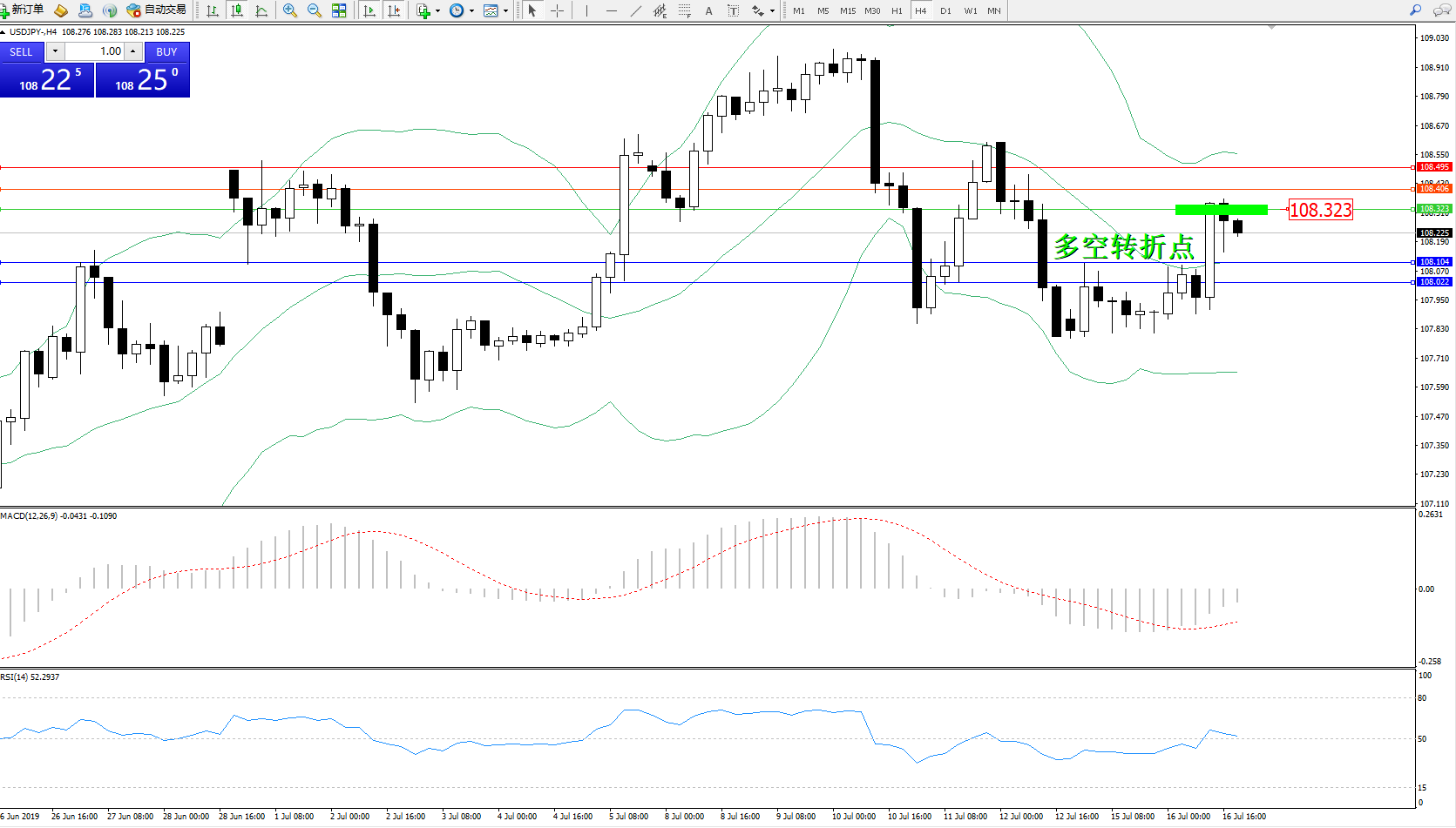 交易策略:108.323下方看跌,目标108.104108.022