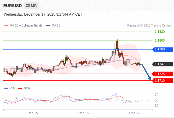 欧元/美元 当日内: 期待1.1725。