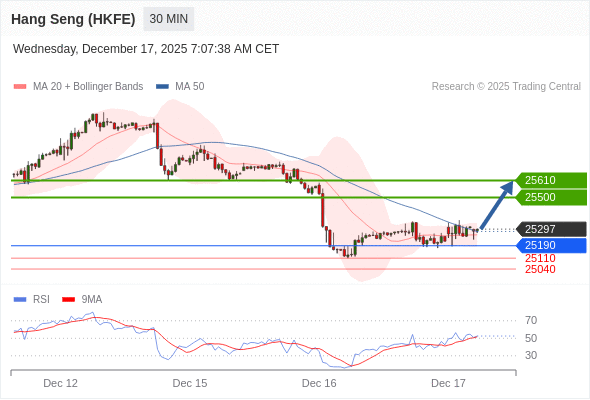 在 25190 之上,看涨,目标价位为 25500 ,然后为 25610 。