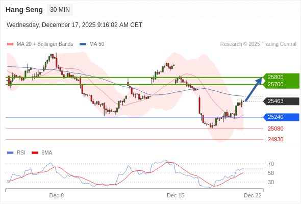 在 25240 之上,看涨,目标价位为 25700 ,然后为 25800 。
