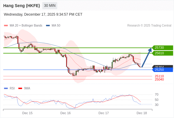在 25250 之上,看涨,目标价位为 25610 ,然后为 25730 。