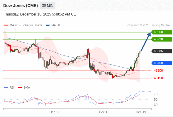 在 48450 之上,看涨,目标价位为 48920 ,然后为 49060 。