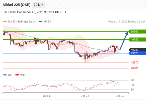 日经225股指期货 (OSE) 当日内: 在49120之上,看涨。