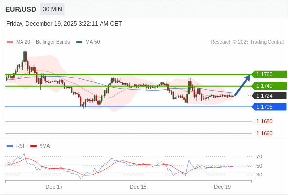 在 1.1705 之上,看涨,目标价位为 1.1740 ,然后为 1.1760 。