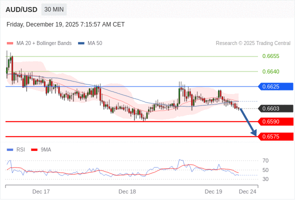 在 0.6625 之下,看跌,目标价位为 0.6590 ,然后为 0.6575 。