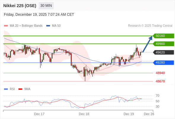 在 49280 之上,看涨,目标价位为 49900 ,然后为 50160 。