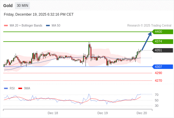 在 4307 之上,看涨,目标价位为 4374 ,然后为 4400 。