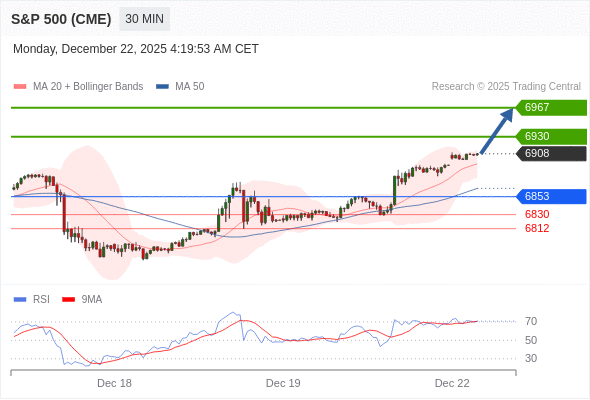 在 6853 之上,看涨,目标价位为 6930 ,然后为 6967 。