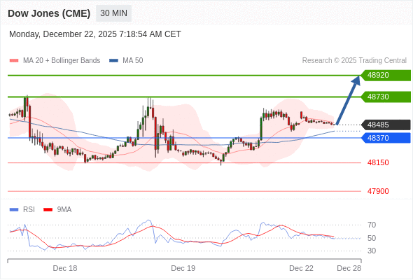 在 48370 之上,看涨,目标价位为 48730 ,然后为 48920 。