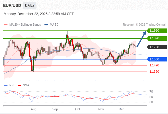 在 1.1550 之上,看涨,目标价位为 1.1820 ,然后为 1.1920 。