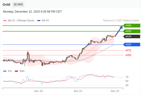 在 4400 之上,看涨,目标价位为 4456 ,然后为 4480 。