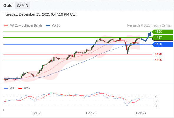 在 4468 之上,看涨,目标价位为 4497 ,然后为 4520 。
