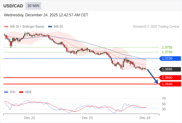 在 1.3720 之下,看跌,目标价位为 1.3660 ,然后为 1.3640 。