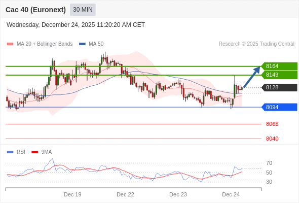在 8094 之上,看涨,目标价位为 8149 ,然后为 8164 。
