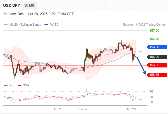 交易策略: 在 156.50 之下,看跌,目标价位为 155.95 ,然后为 155.65 。