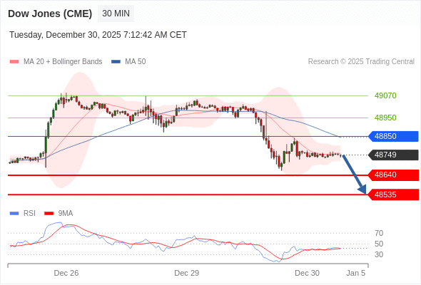 交易策略: 在 48850 之下,看跌,目标价位为 48640 ,然后为 48535 。