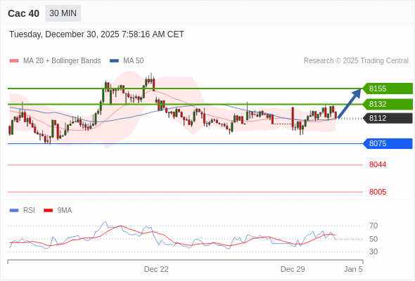 Cac 40 当日内: 在8075之上,看涨。