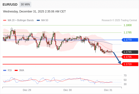 交易策略: 在 1.1770 之下,看跌,目标价位为 1.1735 ,然后为 1.1720 。