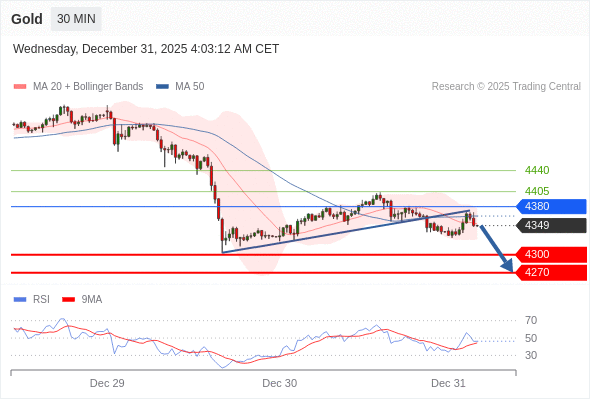 在 4380 之下,看跌,目标价位为 4300 ,然后为 4270 。
