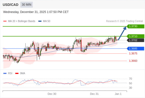 在 1.3685 之上,看涨,目标价位为 1.3710 ,然后为 1.3730 。