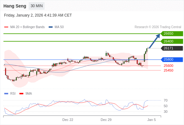 在 25800 之上,看涨,目标价位为 26400 ,然后为 26650 。