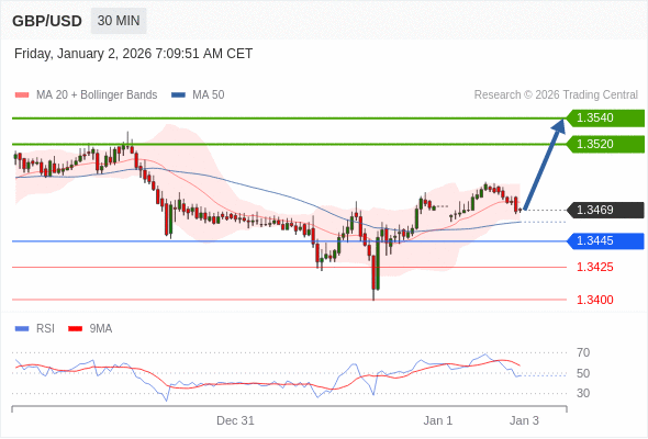 在 1.3445 之上,看涨,目标价位为 1.3520 ,然后为 1.3540 。
