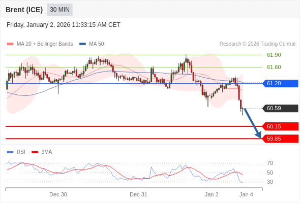 在 61.35 之下,看跌,目标价位为 60.15 ,然后为 59.85 。