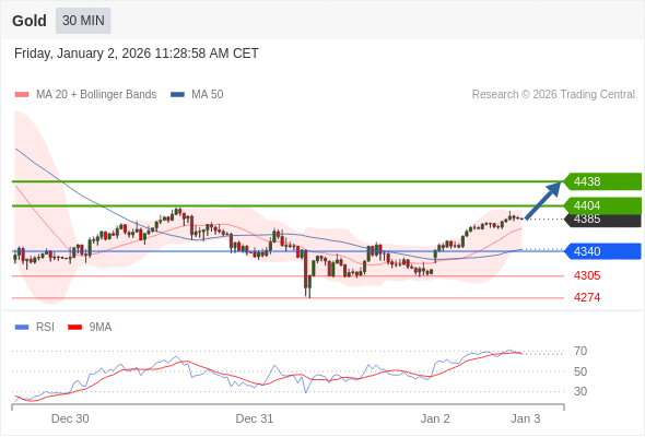 在 4340 之上,看涨,目标价位为 4404 ,然后为 4438 。