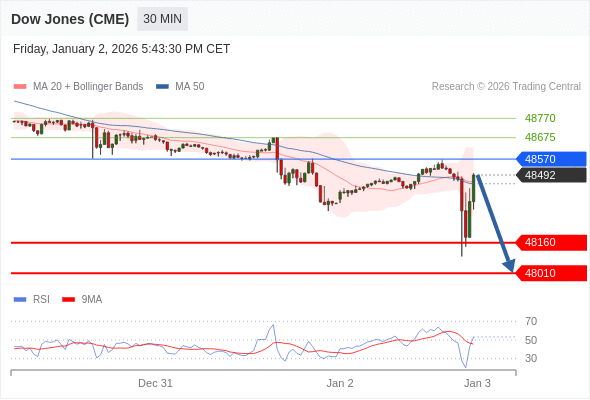在 48570 之下,看跌,目标价位为 48160 ,然后为 48010 。