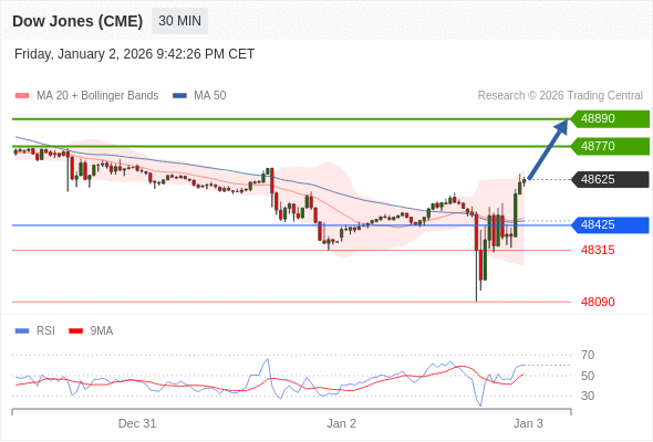 在 48425 之上,看涨,目标价位为 48770 ,然后为 48890 。