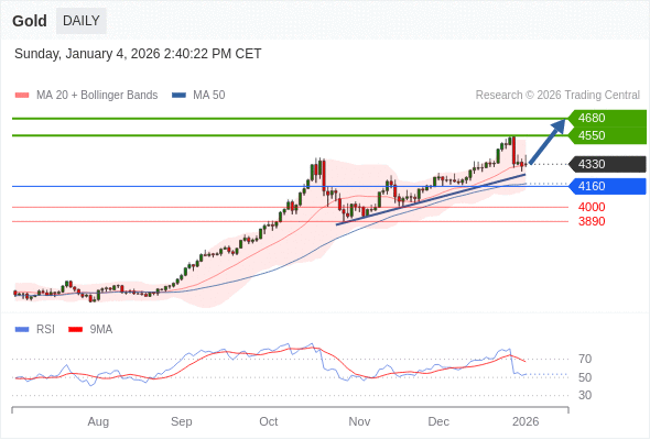 交易策略: 在 4160 之上,看涨,目标价位为 4550 ,然后为 4680 。