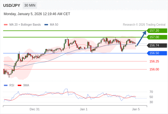 在 156.50 之上,看涨,目标价位为 157.00 ,然后为 157.20 。