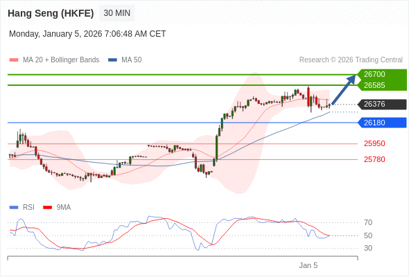 在 26180 之上,看涨,目标价位为 26585 ,然后为 26700 。