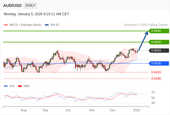 在 0.6530 之上,看涨,目标价位为 0.6800 ,然后为 0.6940 。