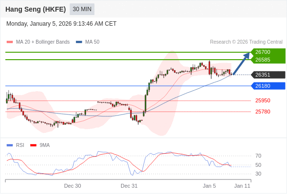 在 26180 之上,看涨,目标价位为 26585 ,然后为 26700 。