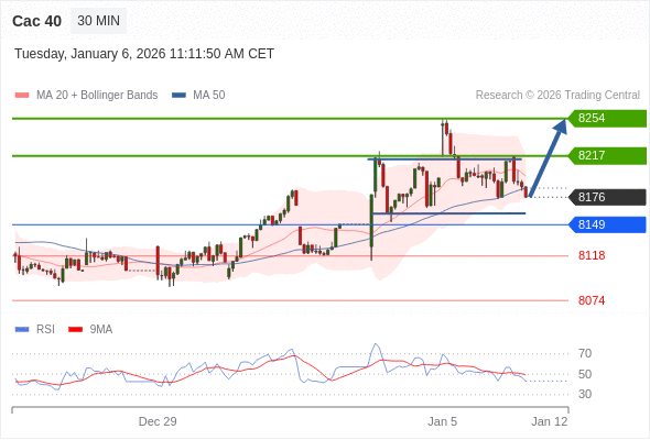 Cac 40 当日内: 超短线(当日内)支撑位在8149附近。