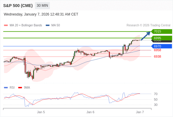 在 6970 之上,看涨,目标价位为 6995 ,然后为 7015 。