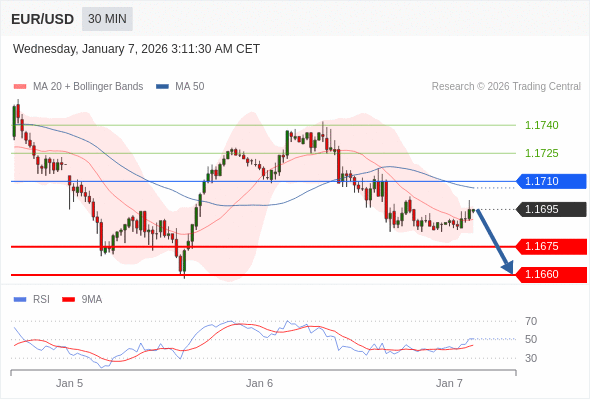 交易策略: 在 1.1710 之下,看跌,目标价位为 1.1675 ,然后为 1.1660 。
